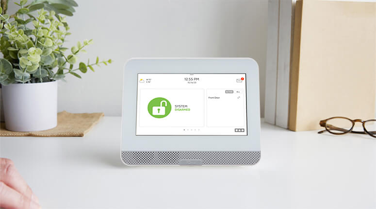 The hub offers full system control through a 7" touchscreen. It connects to cameras and video doorbells for real-time monitoring, and uses advanced encryption for improved protection and peace of mind.